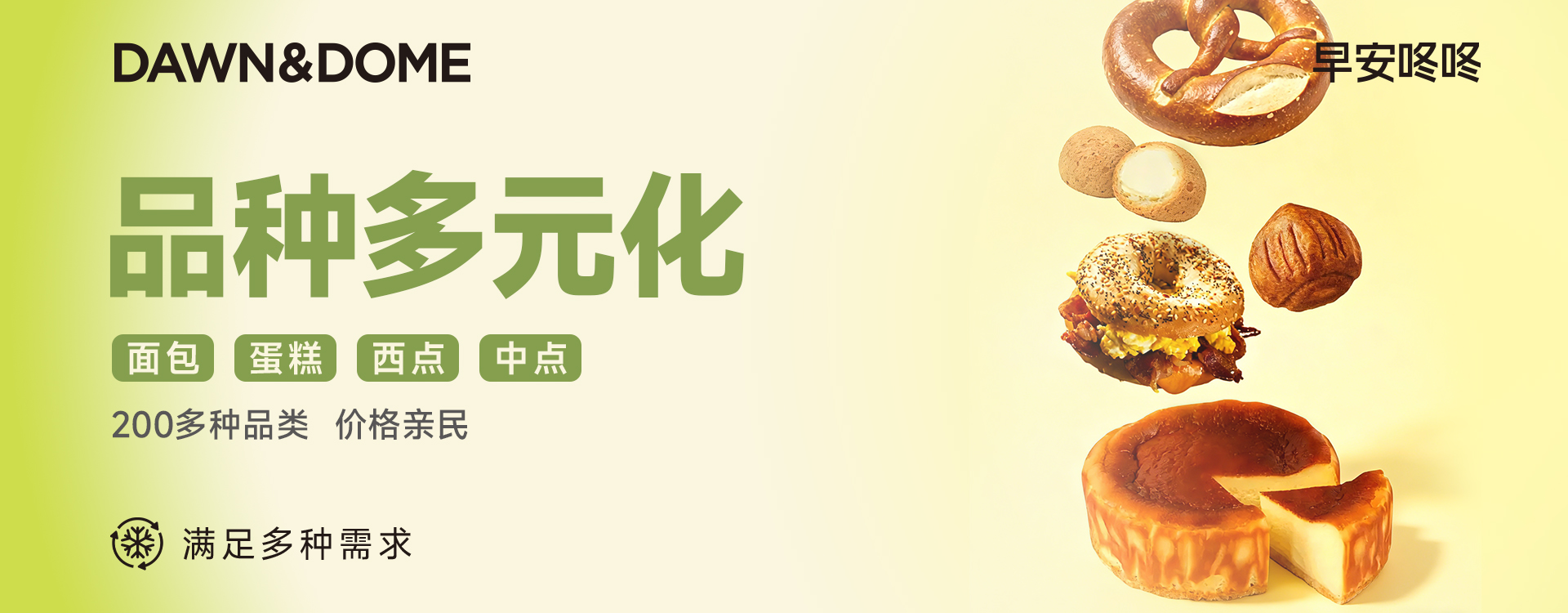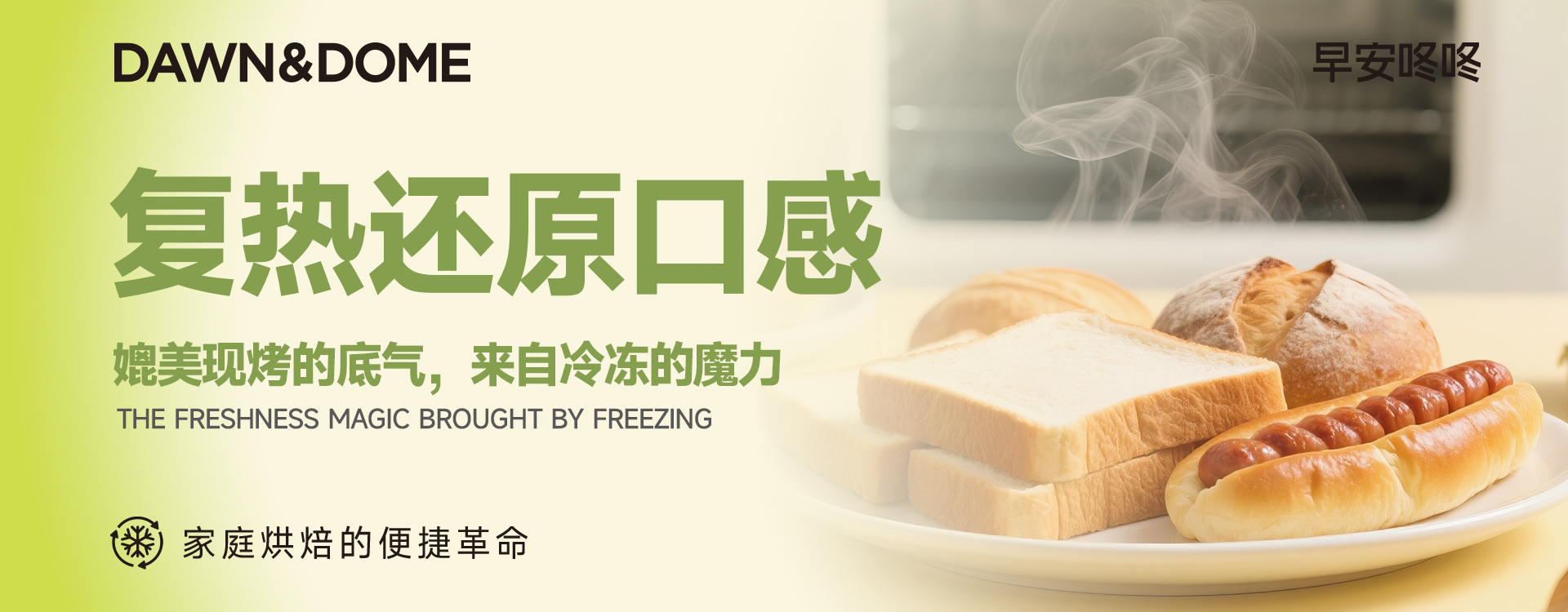 早安咚咚(DAWN& DOME)作为面包界的“蜜雪冰城”,正用硬核的冷冻烘焙工艺,彻底打破这个僵局。我们承诺:你的冷冻面包,经过复烤后,口感、风味与现烤面包几乎无差。 这不是一句口号,而