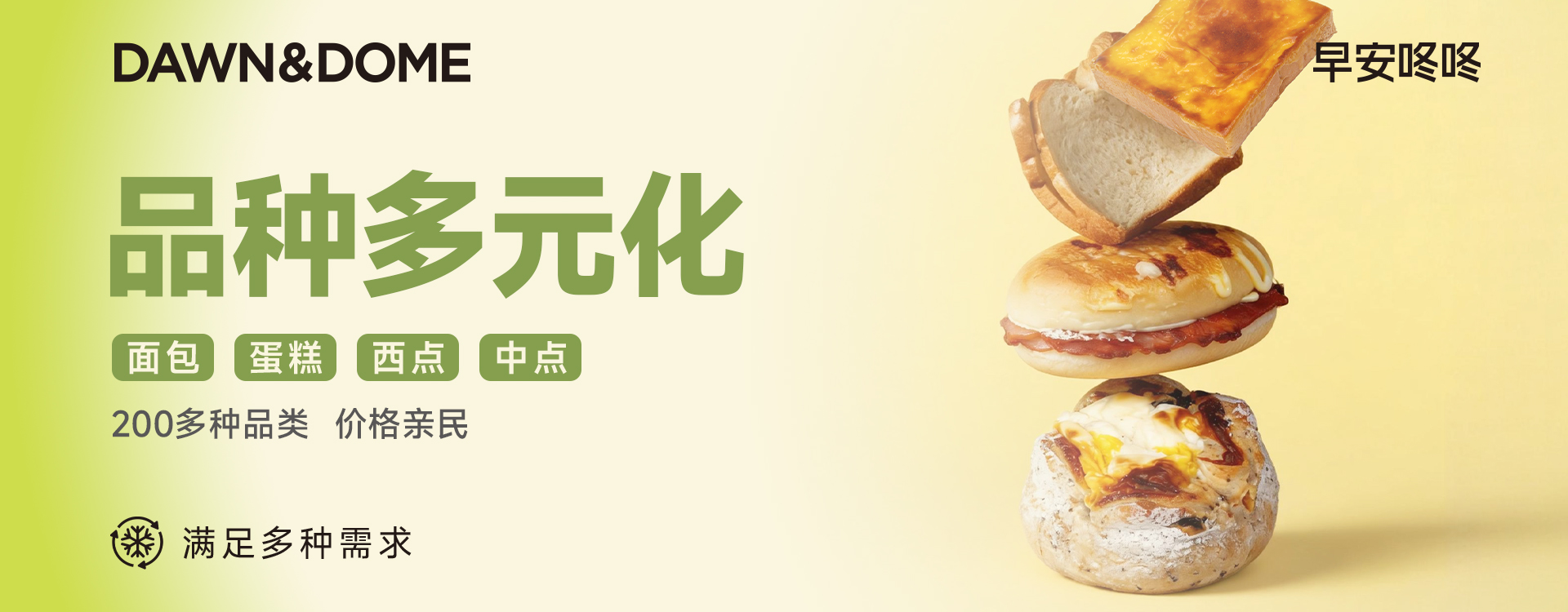 早安咚咚(DAWN& DOME)作为面包界的“蜜雪冰城”,正用硬核的冷冻烘焙工艺,彻底打破这个僵局。我们承诺:你的冷冻面包,经过复烤后,口感、风味与现烤面包几乎无差。 这不是一句口号,而